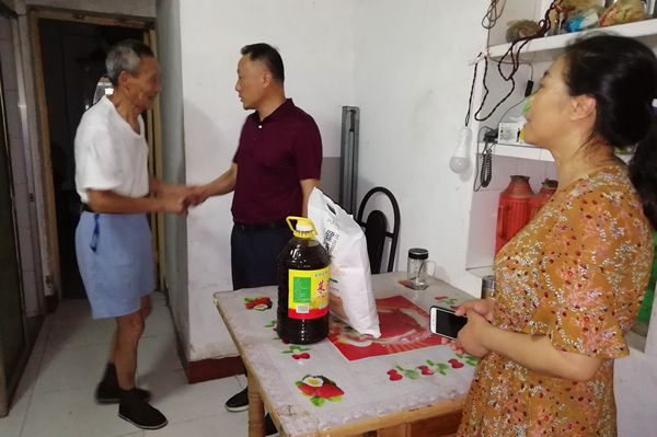 在社區(qū)工作人員陪同下,何族興來到社區(qū)獨居老黨員田國英家走訪慰問,與老人親切交談,關切詢問他的身體和生活狀況,查看他家燃氣設施安全狀況,并叮囑他高溫季節(jié)注意防暑,有困難及時聯(lián)系。隨后,何族興一行還來到全國最美家庭倪明華家,詢問家中生活近況,并送上糧油等生活慰問品。