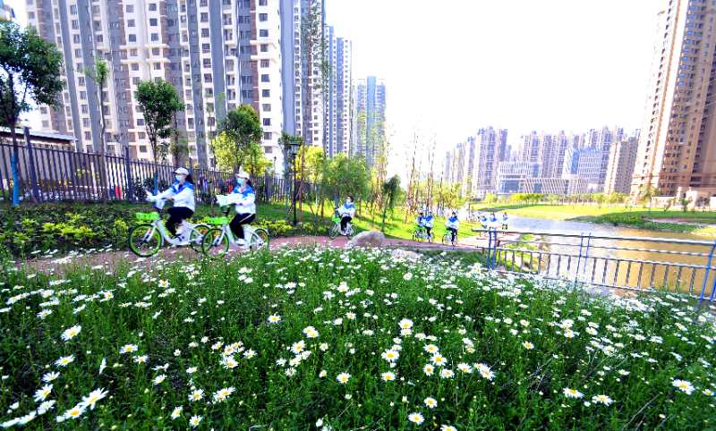 當(dāng)天上午,60余名安慶港華藍(lán)焰義工隊員身穿統(tǒng)一服裝,在港華綠地客戶中心外進(jìn)行環(huán)保宣誓及簽名儀式,并向廣大市民發(fā)出共同參與綠色環(huán)保低碳生活的邀請。隨后活動參與者排成整齊隊列,集體騎共享單車至安慶市體育中心,全程4千米。騎行中,整齊有序的隊伍和青春活力的身影引來不少路人駐足觀看與詢問,義工隊員們也在騎行間隙,積極向路人散發(fā)環(huán)保知識及安全用氣常識手冊,宣傳節(jié)能減排環(huán)保理念,強(qiáng)化市民安全用氣意識。