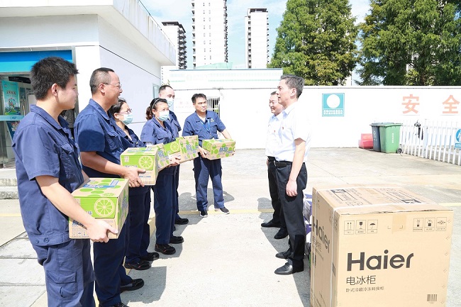 為切實做好夏季防暑降溫工作,保障高溫期間全體職工的身體健康,確保生產(chǎn)經(jīng)營工作順利進行,8月11日下午,安慶港華常務(wù)副總楊善俊、工會主席韓高中一行來到港華路加氣站、雙井街路段戶內(nèi)管外移作業(yè)現(xiàn)場及北部新城調(diào)峰站等處,看望慰問高溫下始終堅守在一線崗位的燃氣工作者,并送去冷柜、飲用水和防暑降溫用品,把公司的關(guān)懷送到職工們的心坎里。