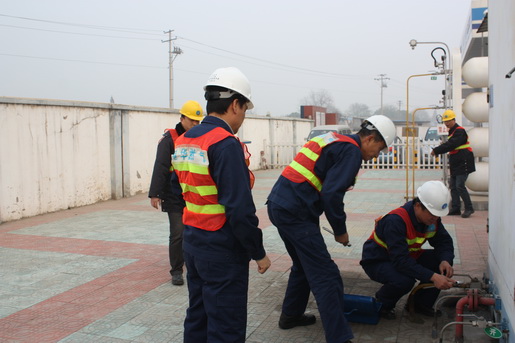 12月6日下午15時(shí)50分,安慶港華燃?xì)饧t關(guān)CNG加氣站內(nèi)響起急促燃?xì)鈭?bào)警器聲。緊接著,加氣工迅速關(guān)閉加氣機(jī)應(yīng)急球閥停止加氣,禁止車輛移動(dòng),并大聲呼喊:“漏氣了,大家快撤到站外安全地帶?!?/span>15:52分,站內(nèi)司乘人員在加氣工的指導(dǎo)下,全部撤到站外,并在站外拉起警戒線。16:00,站內(nèi)搶修人員通過(guò)對(duì)泄漏現(xiàn)場(chǎng)的初步判斷泄漏來(lái)自2#壓縮機(jī)處,立即停止壓縮機(jī)工作。如此同時(shí),當(dāng)班班長(zhǎng)立即把現(xiàn)場(chǎng)情況向站長(zhǎng)報(bào)告。16:10分,接到指令的站、部門負(fù)責(zé)人帶領(lǐng)部門應(yīng)急行動(dòng)小組趕到現(xiàn)場(chǎng)。經(jīng)過(guò)各行動(dòng)小組緊張、有序的處置,僅用20分鐘的時(shí)間就成功檢查并消除了泄漏——2#壓縮機(jī)法蘭處。16:32,現(xiàn)場(chǎng)指揮發(fā)出:“解除警戒,演練結(jié)束”指令。