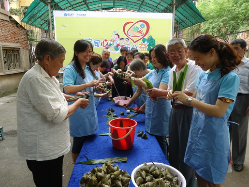 在活動(dòng)現(xiàn)場,義工隊(duì)員們與社區(qū)工作人員一起,邊包愛心粽,邊與圍繞在周圍的社區(qū)老人們拉家?!,F(xiàn)場笑聲不斷、其樂融融,充滿溫情暖意?;顒?dòng)中,所用的包粽食材均采用低碳健康食材,旨在宣揚(yáng)傳統(tǒng)裹粽文化的同時(shí),積極推廣低碳的生活理念。300余只粽子在大家的努力下,兩個(gè)小時(shí)就全部包裹完畢。義工隊(duì)員們挨個(gè)將現(xiàn)場包好的愛心粽以及帶來的綠豆糕、鴨蛋等節(jié)日禮品贈(zèng)與社區(qū)孤寡老人、獨(dú)居長者等有需要的社區(qū)弱勢群體手上,為他們送去安慶港華燃?xì)獾馁N心和關(guān)愛,送去節(jié)日的慰問和濃濃祝福。
