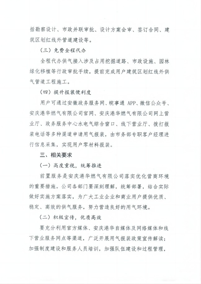 安慶港華燃?xì)庥邢薰居脷鈭?bào)裝 前置服務(wù)工作實(shí)施方案