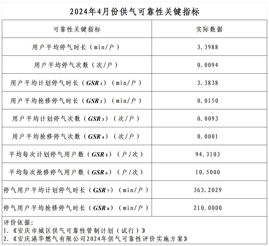 2024年4月供氣可靠性關(guān)鍵指標(biāo)