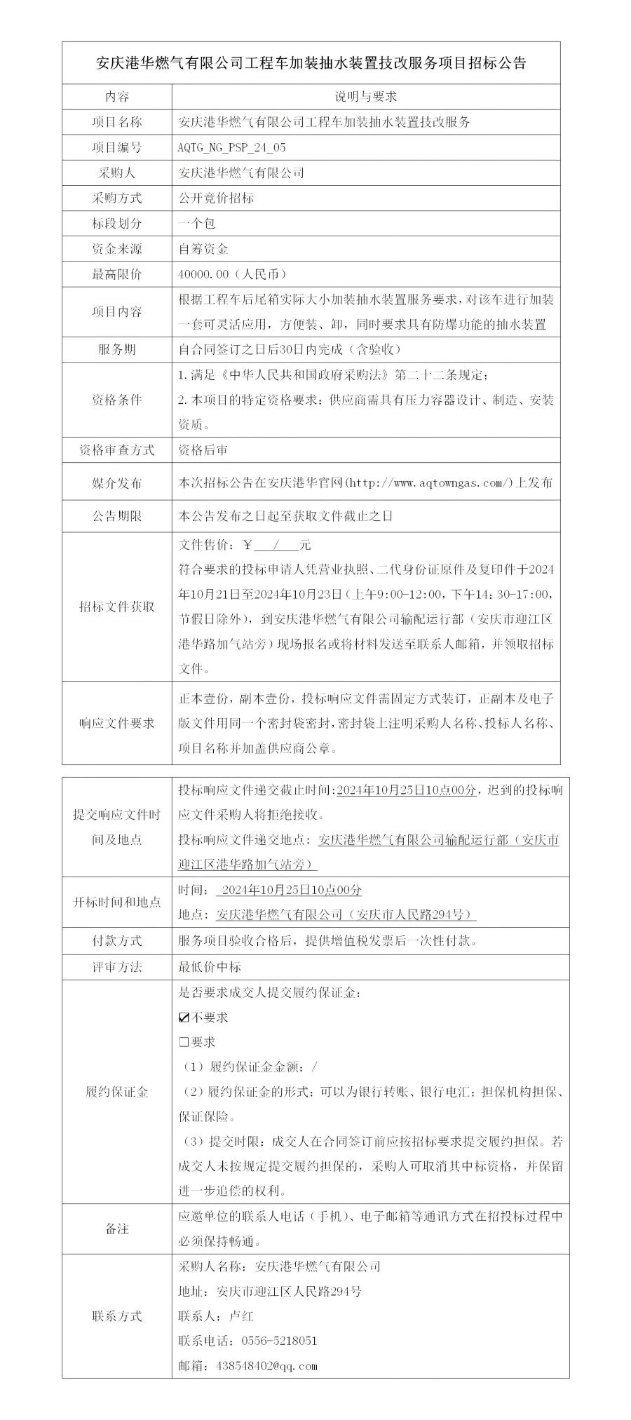 安慶港華燃?xì)庥邢薰竟こ誊?chē)加裝抽水裝置技改服務(wù)項(xiàng)目招標(biāo)公告