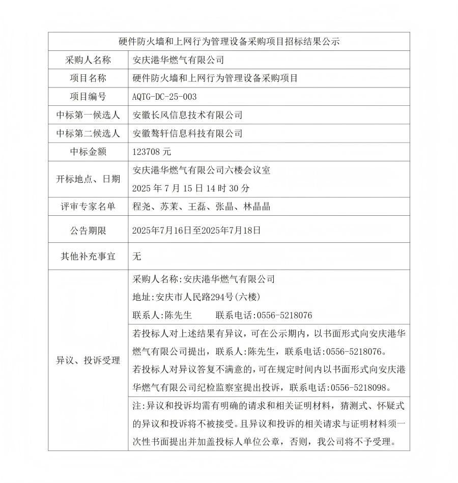 硬件防火墻和上網(wǎng)行為管理設備采購項目招標結(jié)果公示