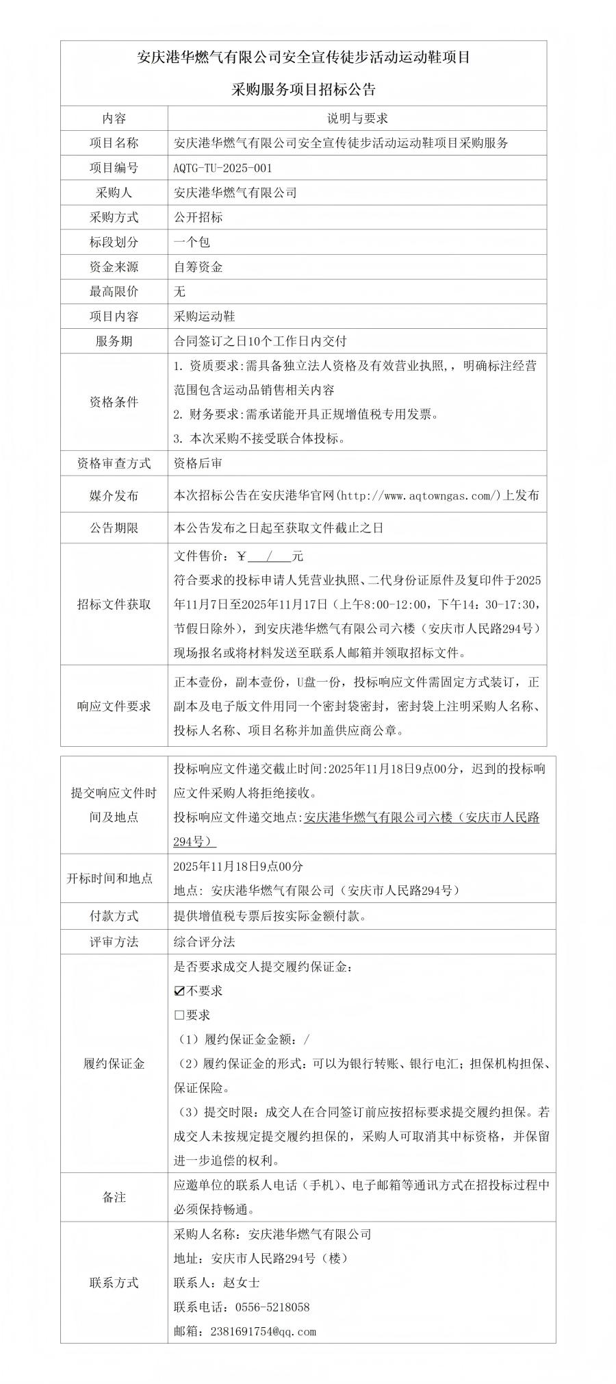 安慶港華燃?xì)庥邢薰景踩麄魍讲交顒?dòng)運(yùn)動(dòng)鞋項(xiàng)目采購服務(wù)項(xiàng)目招標(biāo)公告