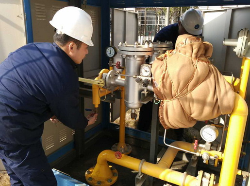 圖為管網(wǎng)運行人員正在檢查燃氣調(diào)壓設(shè)施