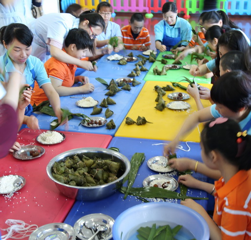活動(dòng)中,學(xué)校負(fù)責(zé)人潘金云帶領(lǐng)義工隊(duì)員們參觀了康復(fù)中心并介紹情況,得知為了幫助這群折翼的天使塑造“心理健康、身體健康、社會(huì)活動(dòng)能力、就業(yè)能力”,康復(fù)中心每一位老師所付出艱辛和努力的故事后,大家深受感動(dòng)。聯(lián)誼中,孩子們被熱烈的氣氛感染,認(rèn)真地表演了黃梅戲選段、詩(shī)朗誦等才藝,展現(xiàn)出的自信、堅(jiān)強(qiáng)和堅(jiān)持,深深地感動(dòng)了在場(chǎng)的每一位義工隊(duì)員。聯(lián)誼后,義工隊(duì)員們一邊與孩子們耐心交流,一邊手把手地交孩子們包裹蜜棗愛心粽,看著自己包出來(lái)的勞動(dòng)成果,孩子們個(gè)個(gè)笑開了花,現(xiàn)場(chǎng)呈現(xiàn)出一片其樂融融的景象。