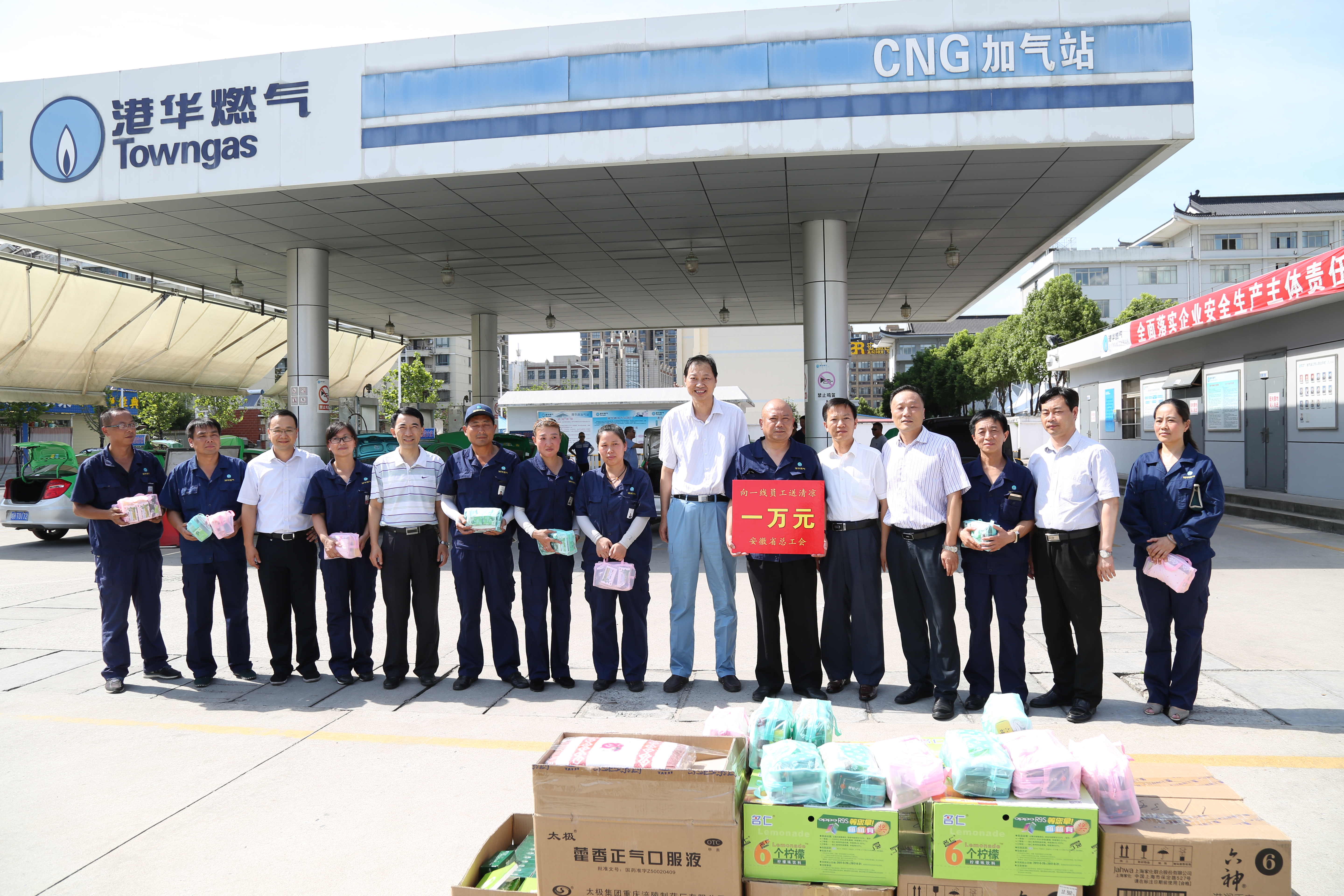 7月18日下午,安徽省總工會(huì)黨組成員、經(jīng)審會(huì)主任胡東輝一行在市總工會(huì)黨組書記、常務(wù)副主席楊林建,副主席吳丹等陪同下,冒著酷暑來到港華路加氣站開展夏季送清涼慰問活動(dòng)。面對(duì)堅(jiān)守在高溫崗位上的一線員工,胡主任對(duì)他們冒高溫、戰(zhàn)酷暑的精神表示問候和敬意。安慶港華董事長何族興、總經(jīng)理謝業(yè)清等人員參加慰問活動(dòng)。