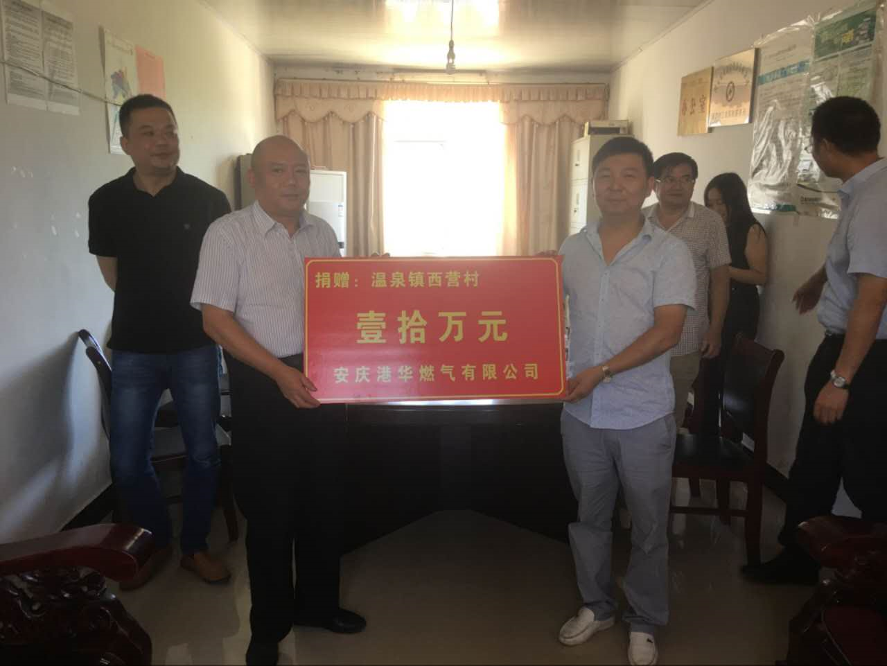 9月8日,安慶港華扶貧工作隊(duì)在黨委委員、副總經(jīng)理黃蔥蔥,黨委委員、工會(huì)主席孫曉偉的帶領(lǐng)下,前往溫泉鎮(zhèn)開(kāi)展扶貧走訪調(diào)研和村民活動(dòng)廣場(chǎng)捐贈(zèng)工作。溫泉鎮(zhèn)鎮(zhèn)長(zhǎng)施躍平、副鎮(zhèn)長(zhǎng)汪珺陪同。在西營(yíng)村,安慶港華扶貧工作隊(duì)與村委會(huì)座談交流,了解該村脫貧攻堅(jiān)工作情況和村民活動(dòng)廣場(chǎng)項(xiàng)目建設(shè)計(jì)劃,希望項(xiàng)目盡快實(shí)施,為村民提供更加舒適的活動(dòng)場(chǎng)所。會(huì)上,安慶港華燃?xì)夤鞠蛭鳡I(yíng)村捐贈(zèng)10萬(wàn)元基層建設(shè)資金用于村民活動(dòng)廣場(chǎng)項(xiàng)目建設(shè)。