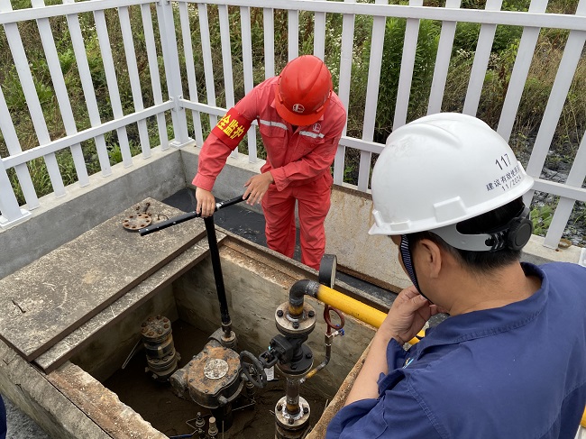 “山口高壓停輸作業(yè)區(qū)域燃?xì)馓铰┸嚨谌螜z測(cè)結(jié)果無(wú)異常,可開(kāi)啟管線4#閥門”,伴隨著來(lái)自安慶港華調(diào)度中心的指令,高壓管線與北部新城場(chǎng)站連接的最后一道閥門緩緩開(kāi)啟,安慶高新區(qū)山口片區(qū)高壓燃?xì)廨斉涔こ谈邏汗芫€順利完成接駁。